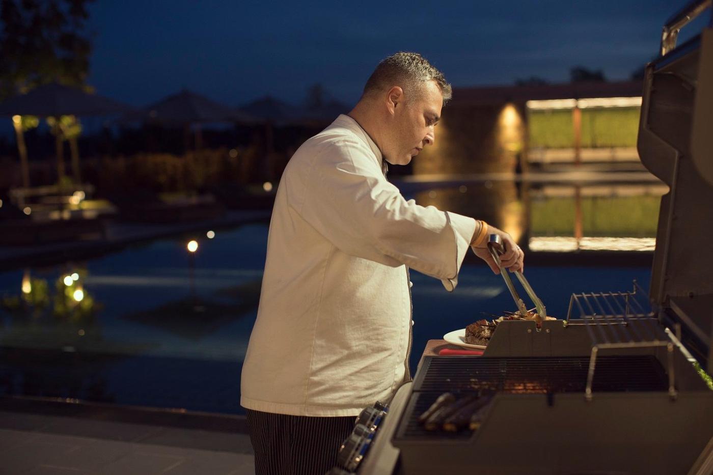 Grand Villa. Combining class and contemporary Burmese designs, the villa features genuine teak furnishings. It comes with a spacious living area, 2 flat-screen TVs and a dining area. The bedroom is fitted with a King-sized bed, mini bar and a private bathroom with a shower. ;